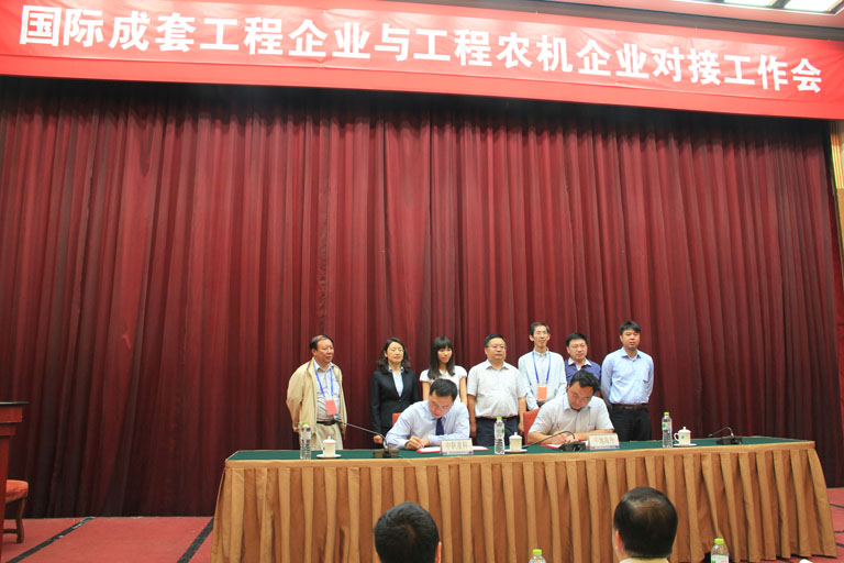 会上,有6家供需企业签署了《战略合作协议》,分别为徐州工程机械集团进出口有限公司和中国葛洲坝集团国际工程有限公司、中联重科股份有限公司和中地海外汉盛(北京)贸易有限责任公司、山东山推工程机械进出口有限公司和中航技北京公司。