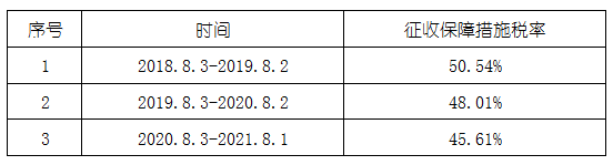 2019年2月15日,南非国际贸易管理委员会(ITAC)发布六角钢螺钉保障措施调查终裁,将于2月19日开始对六角钢螺钉征收50.54%的保障措施税,之前以较低税清关的货物,不必补缴差额,其中汽车紧固件将被豁免。南非最终保障措施征收时间及税率情况如下.