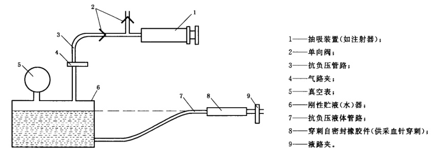 The testing tube is inserted into the test system, so that it is consistent with the pressure in the left tank. Then according to the elevation of blood tube application, the tester will create different pressure value. After waiting for one minute for the pressure to stabilize, the weight of tube before and after test is compared to determine the drawing volume.